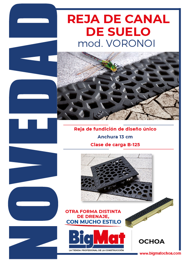 NOVEDADES Fontanería REJA DE CANAL DE SUELO Mod. Voronoi de ACO ESTUFA DE PELLETS CON WIFI INTEGRADO BP-100 C PACK INODORO COMPLETO, MARSELLA DE CUBIK EIKO 365 - FRESCO EN VERANO, CÁLIDO EN INVIERNO CLORADOR SALINO PARA PISCINAS ELEVADAS SISTEMA DE FIJACIÓN TOP FIX de Clever Construcción COLA SOUDAL SPRAY EL PRIMER ARMAZÓN CON ESTRUCTURA ABIERTA - OPENBOX TRATAMIENTO PROFESIONAL ANTI-DESLIZANTE PROGRIP ACONDICIONAMIENTO ACÚSTICO SOPREMA REFORMULACIÓN AGUA STOP INVISIBLE FISCHER Escudo Térmico Total